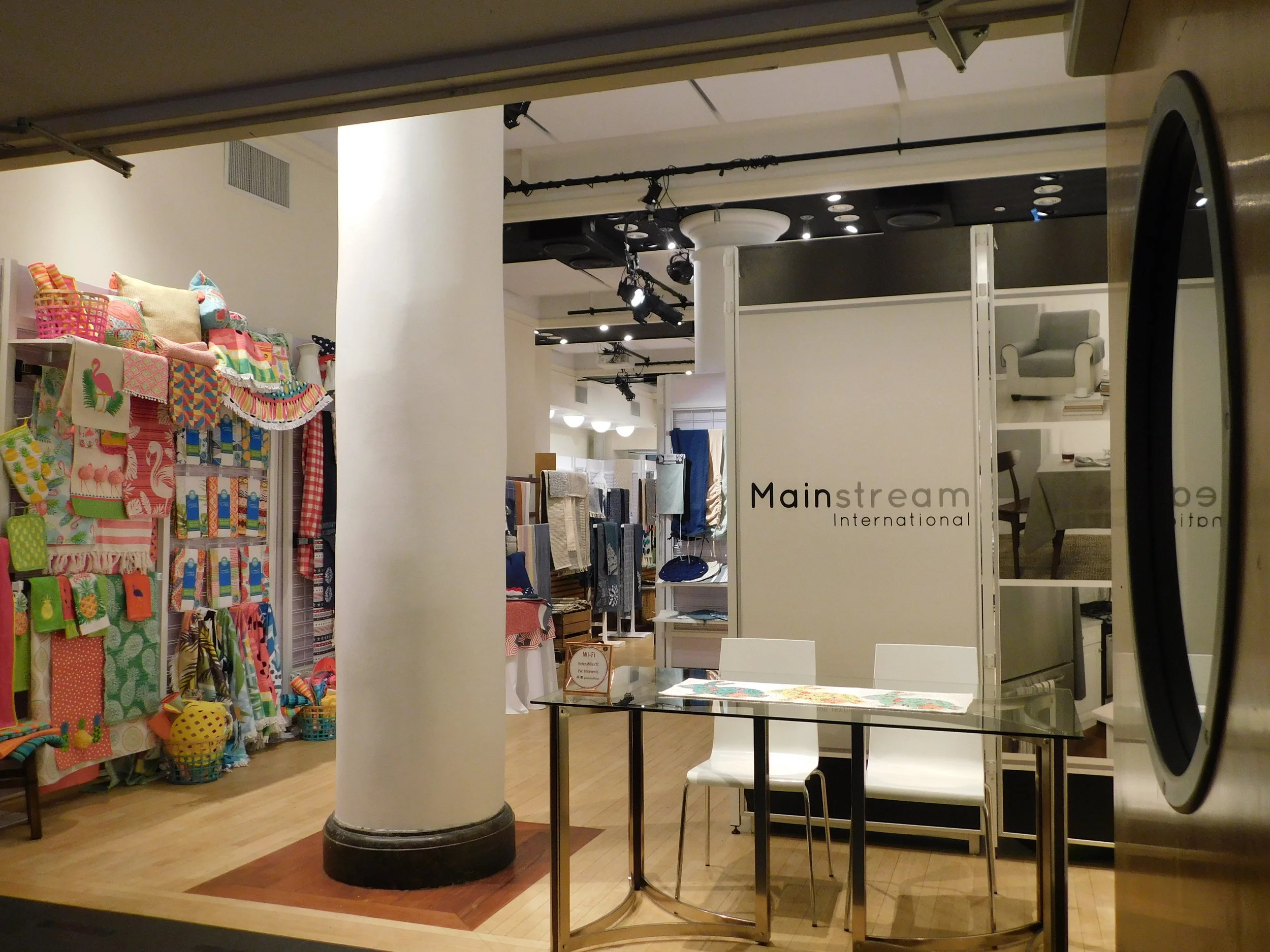 This past week, Mainstream International[1] took over the Event Space and turned it into their off-site showroom for Market Week, a bi-annual event in which buyers and sellers across New York convene for the sale of home textiles. Located in Edison, New Jersey, Mainstream brought their goods to the heart of Chelsea, a perfect central location to host their meetings and product showings. They put together a gorgeous showcase featuring elements from their kitchen, bathroom and bedroom lines.